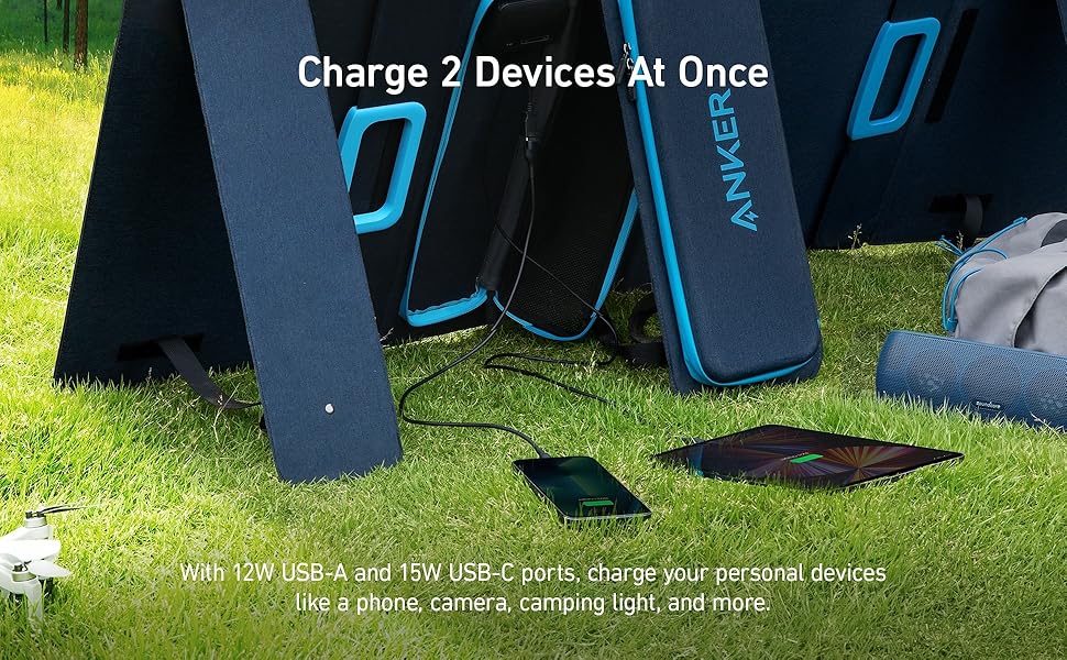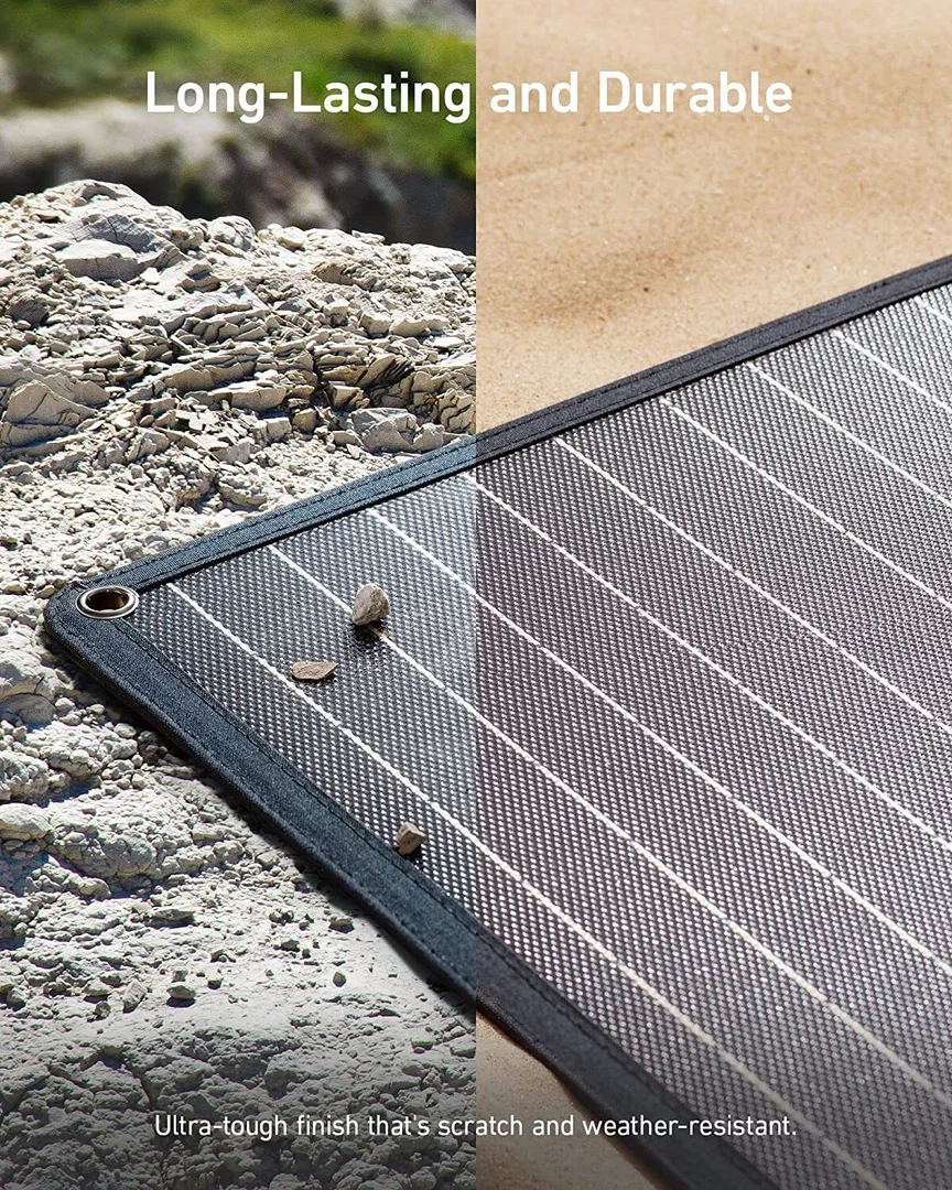 ANKER 625 jak wcześniej wspomniano, cechuje się mocą 100 W, która gwarantuje szybkie ładowanie urządzeń. Panel został wyposażony w port wyjściowy USB-A i USB-C, dzięki czemu możesz ładować jednocześnie dwa urządzenia, np. telefon i laptop. Takie rozwiązanie przekłada się na szybkie ładowanie urządzeń, które mogą Ci być potrzebne w różnych sytuacjach.
