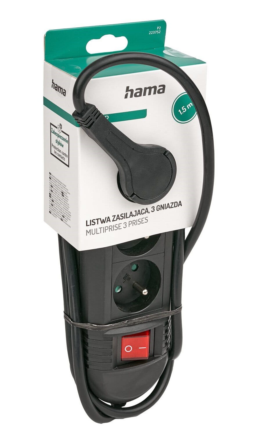 Hama LISTWA ZASILAJĄCA COMFORT 3GN 1,5M CZARNA