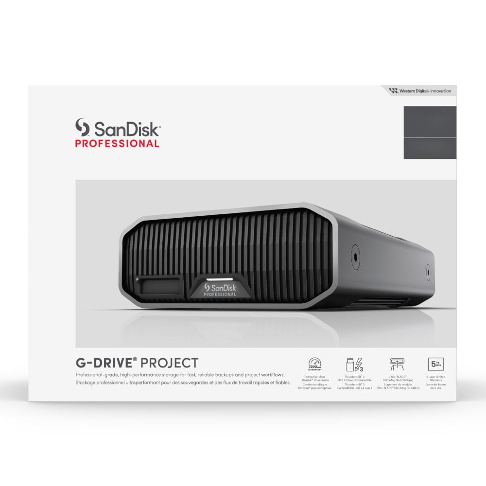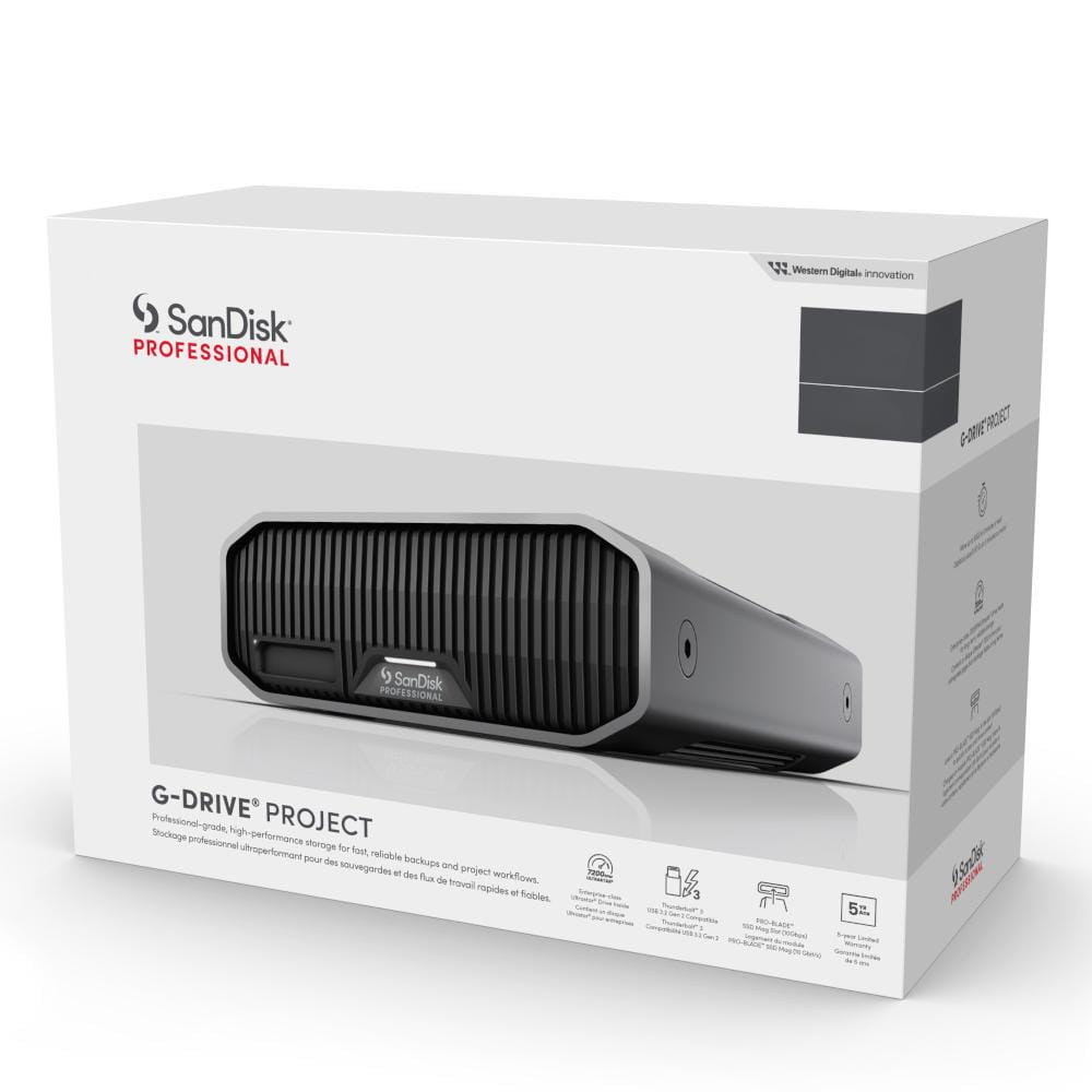 Dysk SanDisk Professional G-DRIVE PROJECT jest stworzony dla twórców. Przesyłaj, edytuj i archiwizuj duże ilości cennych danych każdego dnia. Przepływ pracy jest szybki i prosty, dzięki czemu możesz skupić się na treści i przestać martwić się o miejsce na dysku.